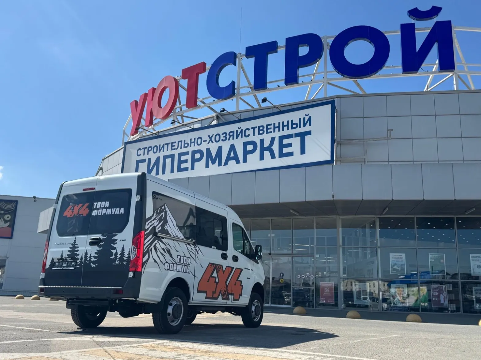 Для повышения узнаваемости и знакомства с автомобилем Соболь NN 4X4 в апреле этого года автомобиль был размещен на территории самой крупной сети строительно-хозяйственных гипермаркетов города Симферополя.